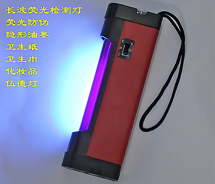 • 便攜式手提紫外線檢測(cè)燈,UVA裝4W長(zhǎng)波365nm紫外線燈管,頂端帶有白光LED.可做照明使用。攜帶方便,小巧實(shí)用。